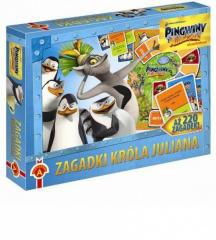 Król Julian nudzi się od rana, dlatego wymyślił dla mieszkańców zoo nową zabawę: konkurs zadawania zagadek. Każdy z uczestników musi zadawać konkurentom zagadki. Osoba, która wygra rywalizację będzie miała zaszczyt wręczenia Julianowi prezentu, podziękowania na Kleczkach i złożenia wyrazów przesadnego, ale zasłużonego uwielbienia. Do zagadkowania przystąp. Zawartość pudełka: plansza, 6 pionków z postaciami, 6 podstawek do pionków, 110 kart zagadek, klepsydra, instrukcja.