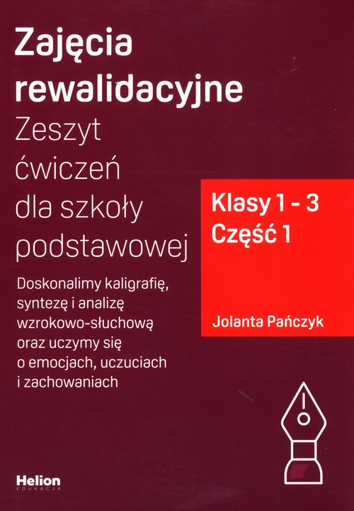 Zajęcia rewalidacyjne. Zeszyt ćwiczeń dla szkoły podstawowej, klasy 1 - 3. Część 1. Doskonalimy kaligrafię, syntezę i analizę wzrokowo-słuchową oraz uczymy się o emocjach, uczuciach i zachowaniach to zbiór zadań doskonalących poprawne i kształtne pisanie, syntezę i analizę wzrokowo-słuchową, właściwe łączenie liter i sylab w wyrazy oraz wyrazów w zdania, a także czytanie ze zrozumieniem. Zawarte tu ćwiczenia wdrażają do poprawnego budowania wypowiedzi, uczą, jak identyfikować emocje, jak je nazywać i w odpowiedni sposób wyrażać. Treść zadań jest dobrana tak, by była bliska uczniom klas 1 - 3 i utrwalała nawyk kulturalnego zachowania i szacunku dla innych.