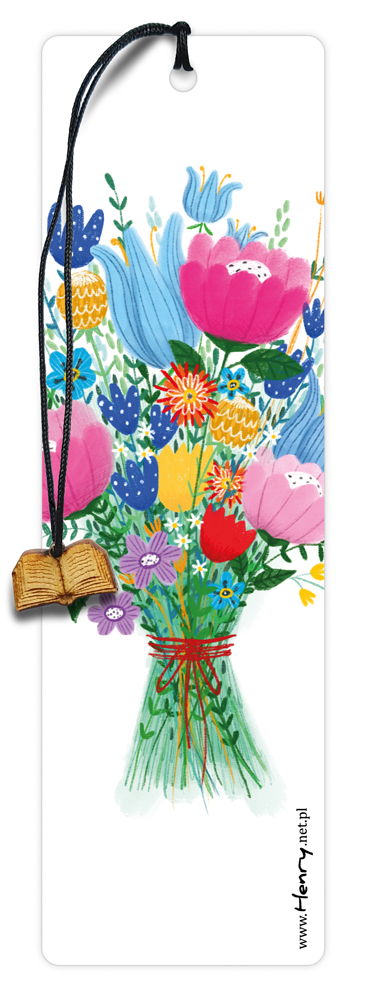 Zakładka do książki z sentencją. Dwustronna, ozdobiona derwnianą zawieszką w kształcie książki.