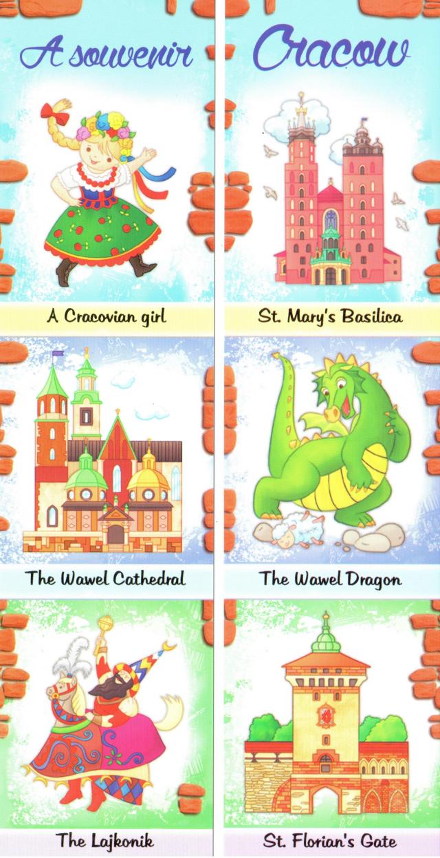 Zakładka. ""A souvenir from Cracow - dzięcięca "" jest to produkt posiadający atrakcyjne dla dzieci obrazki związane z Krakowem.