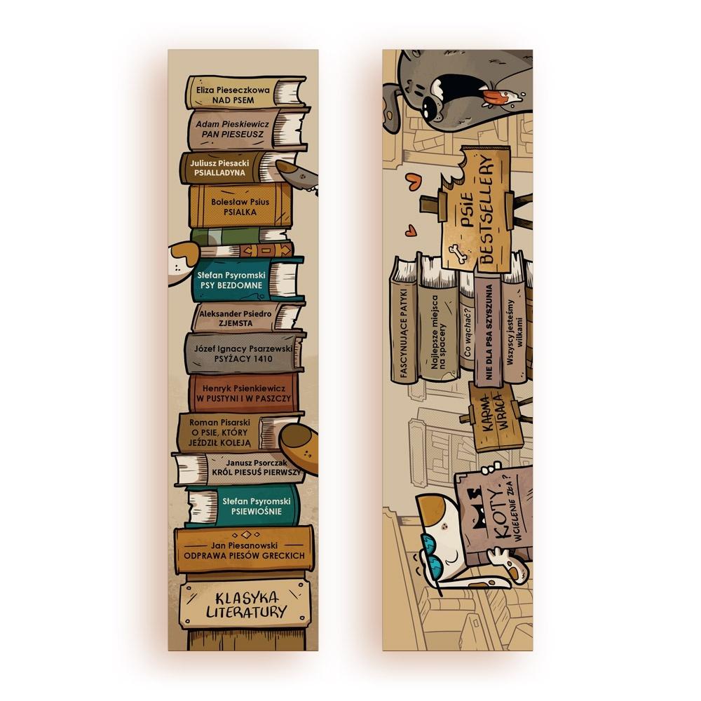 Gdyby Twój pies był odpowiedzialny za domową biblioteczkę, nie mogłoby w niej zabraknąć prawdziwych klasyków psiej literatury. Znasz ,,Odprawę psów greckich" albo ,,Psy bezdomne"? Jeśli nie, czas nadrobić zaległości! Nasza zakładka przyda Ci się nie tylko do tego, by zaznaczać miejsce, w którym przerywasz lekturę. Sięgnij po nią i po wszystkie książki z listy psich bestsellerów, by wreszcie mieć o czym kulturalnie pokonwersować ze swoim czworonogiem. Karton ozdobny perłowy 300g, sztywny, metaliczno-srebrny połysk Wymiary: 50x200mm