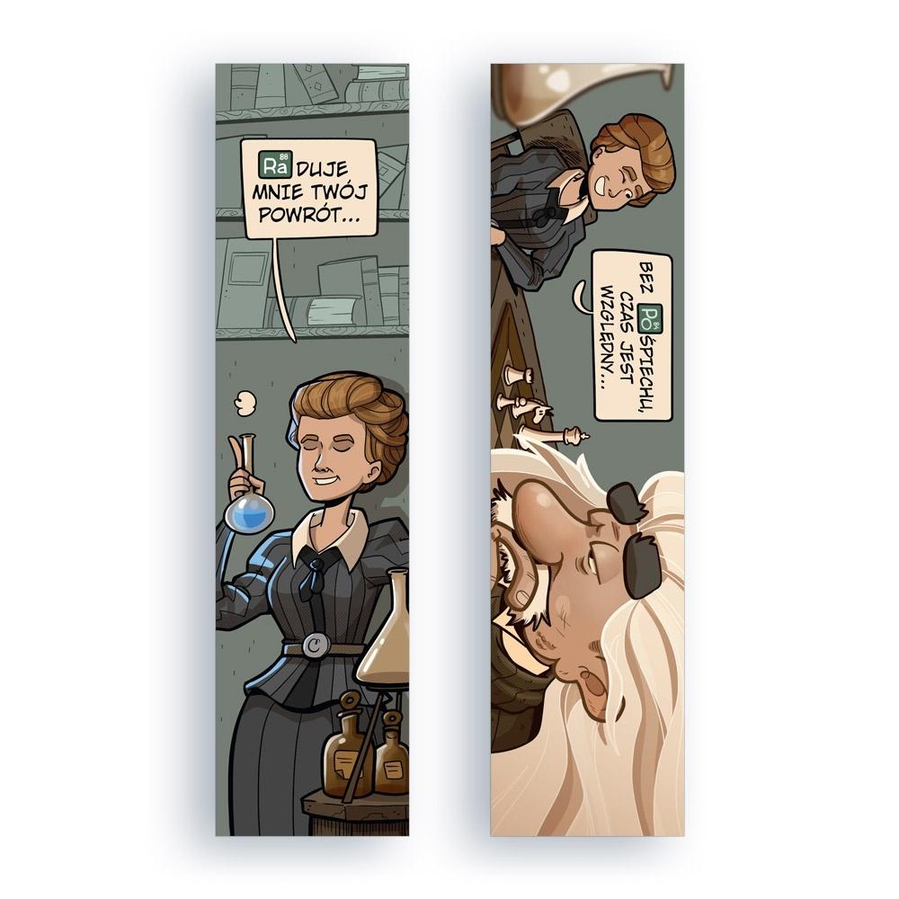 Maria Skłodowska-Curie w pełnym blasku naukowego geniuszu! Zakładka dla tych, którzy z książkami lubią eksperymentować i nigdy nie tracą ciekawości świata. Karton ozdobny perłowy 300g, sztywny, metaliczno-srebrny połysk Wymiary: 50x200mm