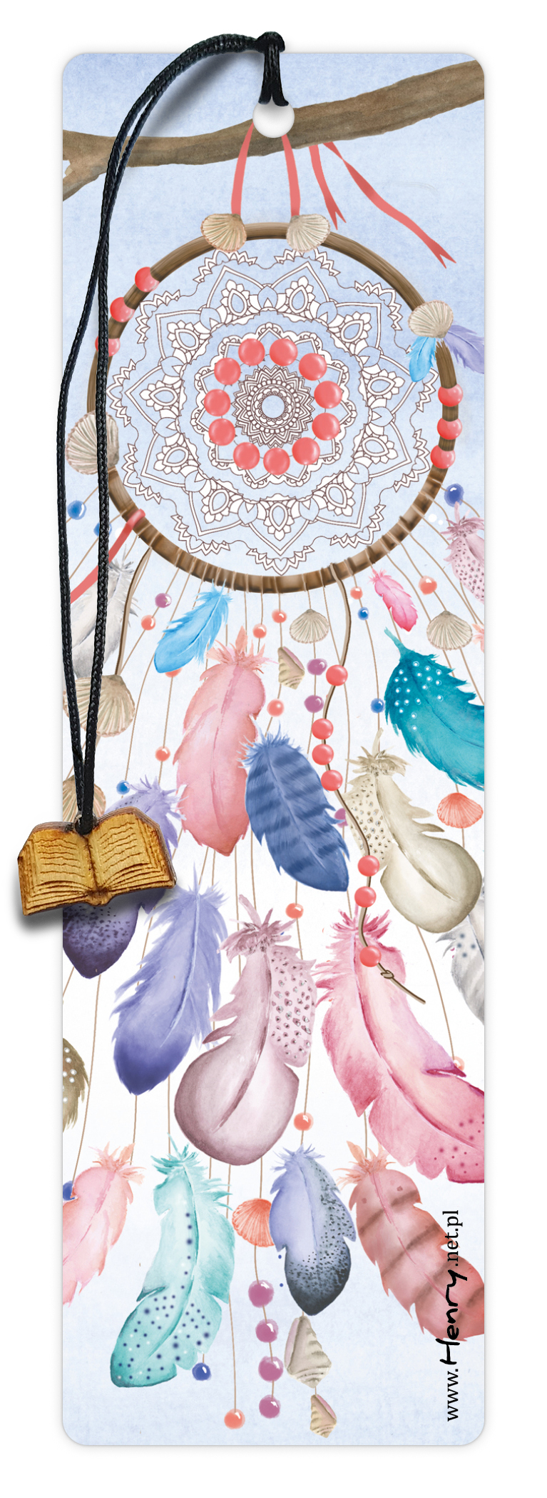 Zakładka do książki z sentencją. Dwustronna, ozdobiona derwnianą zawieszką w kształcie książki.