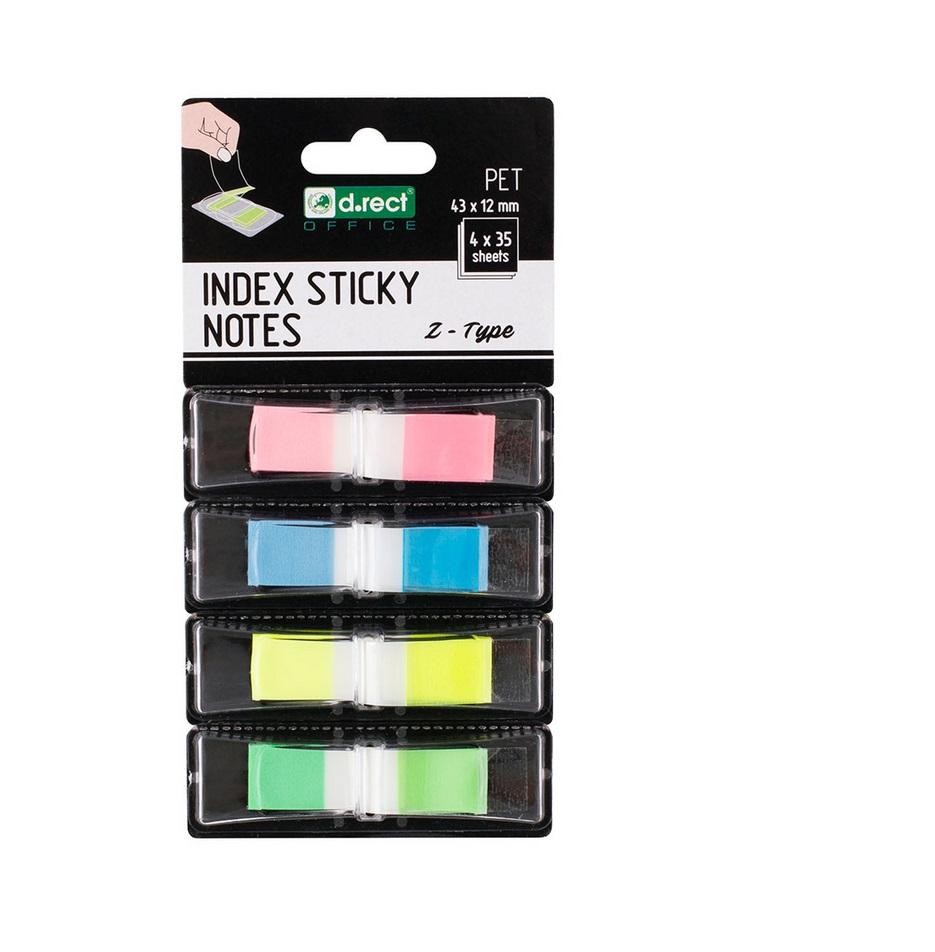 - zestaw zakładek w praktycznych pojemnikach - 4 kolory po 35 sztuk na blistrze - neonowe - rozmiar zakładki: 43 x 12 mm
