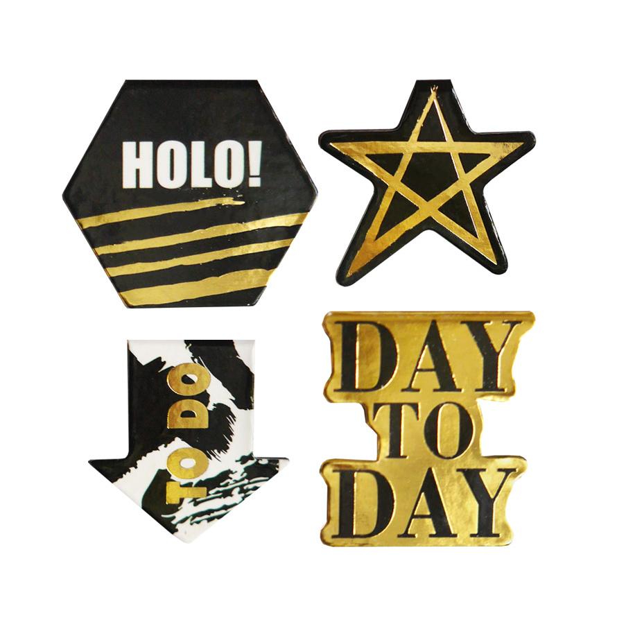 Zestaw 4 sztuk zakładek magnetycznych w kolorystyce czarnej i złotej.