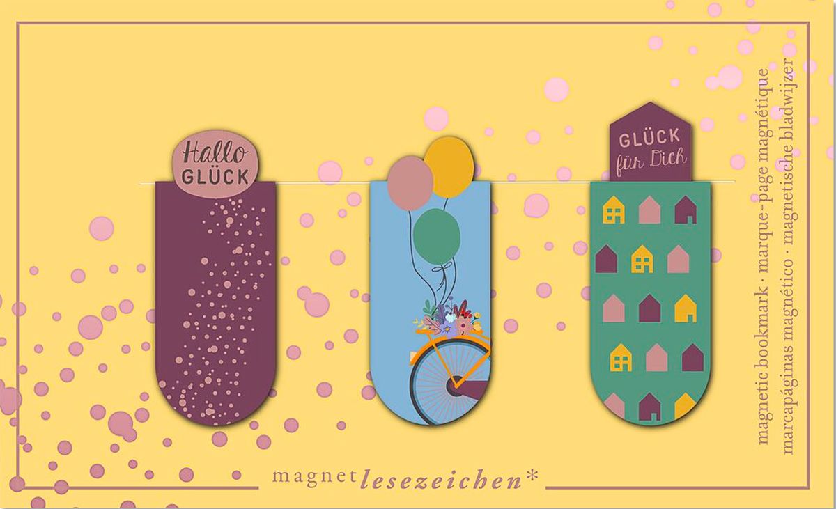 Trzy zakładki magnetyczne w zestawie są tematycznie skoordynowane.