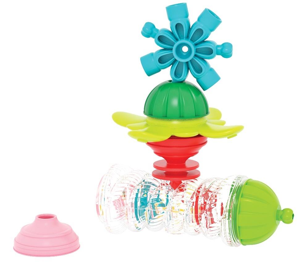 Zakręcony Deszczyk zawiera w środku małe kuleczki, które w trakcie zabawy przesuwają się, dzięki czemu Deszczyk może pełnić również funkcję grzechotki.