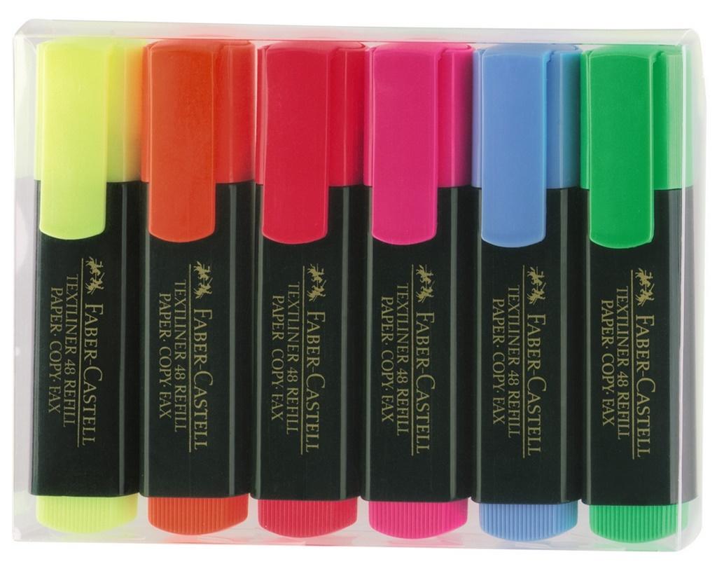 bardzo wysokiej jakości zakreślacz możliwość ponownego napełniania idealny do wszystkich rodzajów papieru atrament na bazie wody linia podkreślenia o szerokości 5, 2 lub 1 mm 6 kolorów w etui