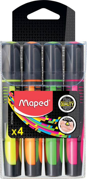 Zakreślacz FLUO PEP'S MAX: podłużny kształt obudowy.Trójkątny uchwyt. Perforowane, miękkie boki zapewniają komfort kreślenia i zapobiegają wyślizgiwaniu się zakreślacza z dłoni.Tusz odporny na działanie światła - nietoksyczny o wysokiej wydajności i trwałości.Do wszystkich papierów standardowych, samokopiujących, fotokopii, termo papierów i papierów faksowych. Pozostawione bez skuwki nawet po 4 godzinach nie tracą swoich właściwości. Ścięta końcówka umożliwia pisanie cienką i grubą linią od 1 do 5 mm. Etui 4 kolory. JS 1 etui.