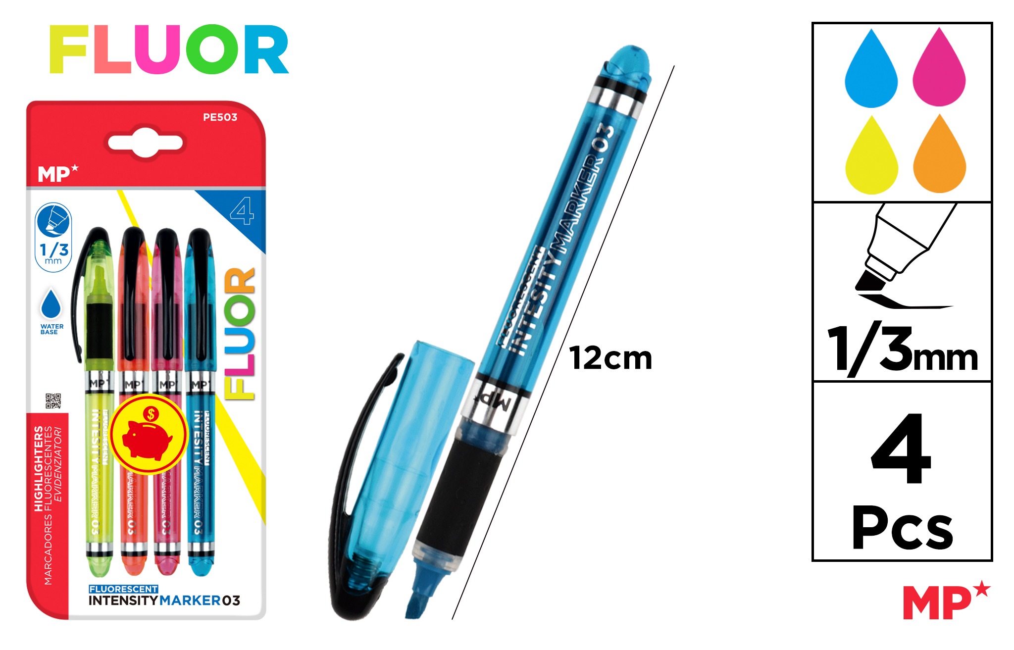 Zakreślacz fluorescencyjny 1/3mm 4szt/blister miks kol.