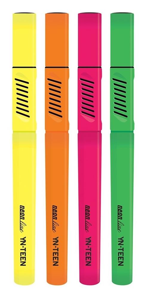 Opakowanie zawiera 4 zakreślacze: żółty, zielony, różowy, pomarańczowy.