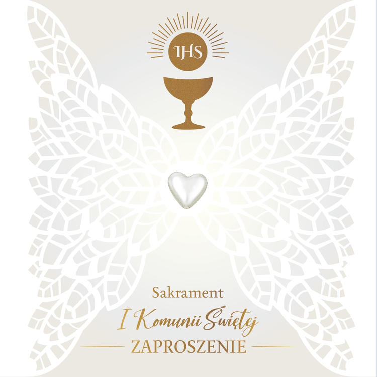 Zaproszenie Premium na Komunię ZP-053 Zaproszenia z serii Premium ZP wyróżniają się elegancją i wyjątkowym opakowaniem. Zdobienia w zależności od wzoru zawierają dekoracyjne elementy doklejane - perełki, kokardki, akcenty biżuteryjne; tłoczenia oraz przynajmniej dwie uszlachetnienia, takie jak folia perłowa lub holograficzna albo delikatny brokat. Zaproszenia pakowane są po 5 sztuk, mają w zestawie dopasowane koperty, a na specjalnej wkładce z tyłu można przeczytać tekst zaproszenia. Cechy szczególne: typ produktu: zaproszenie na Komunię zdobienia: doklejane elementy dekoracyjne, tłoczenie przestrzenne, przynajmniej dwa uszlachetnienia z folii lub brokatu, orientacyjna wielkość: 14,5 x 14,5 cm w opakowaniu: 5 sztuk zaproszeń z dopasowanymi kopertami, okazja: Komunia