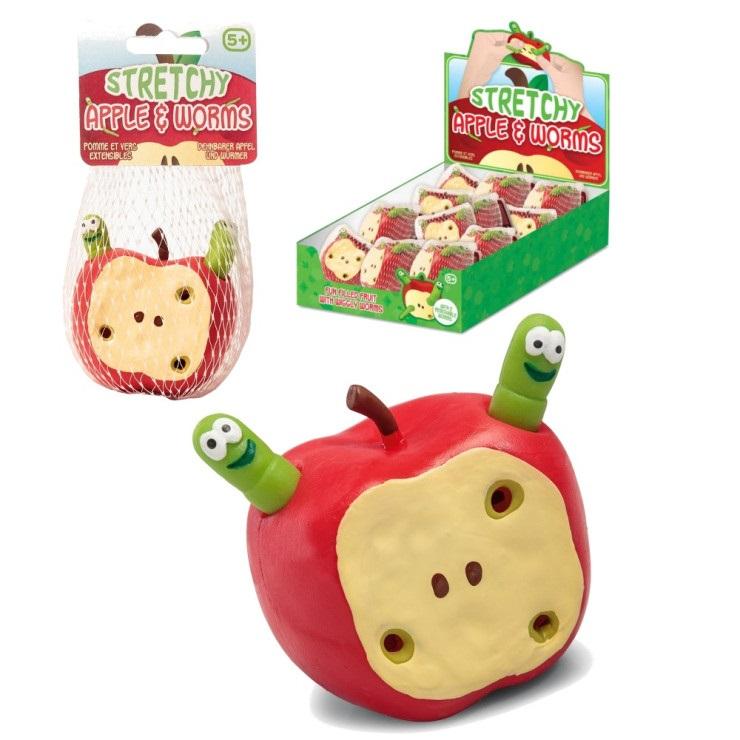 Bardzo realistycznie wyglądające jabłko z odkrojonym kawałkiem ukrywający dwa otwory i pestki. Jabłko posiada na górze szypułkę oraz dwa kolejne otworki. Do zestawu dołączone są również dwa zielone robaki, które można wkładać do dziurek w jabłku. Rozciągając i ściskając jabłko można powodować chowanie się i wysuwanie robaków. Jabłko ma średnicę około 6.5cm,
