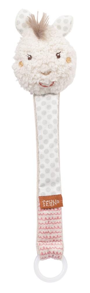 Zawieszka do smoczka, Lama Maya, z kolekcji: Peru. Milutka zawieszka do smoczka z uroczą główką Lamy pochodzącej z Machu Picchu z peruwiańskich Andów, pomoże rozwiązać problem ginącego smoczka! Zawieszka posiada malutką pluszową maskotkę - grzechotkę i sznureczek, który przewlekamy przez uchwyt smoczka. Z pewnością stanie się niezbędnikiem podczas spacerów, podróży oraz codziennego odkrywania świata. Idealnie przylega do ubrania dziecka. Zapewnia pewny uchwyt podczas ćwiczeń. Posiada grzechotkę ukrytą w główce Lamy. Wszystkie zabawki niemieckiej marki FEHN są bezpieczne dla dzieci od 0 lat. Wykonane są z najlepszej jakości materiałów. Spełniają normy EN71, CE, badane w instytutach ""Stiftung Warentest"" lub ""kotest.