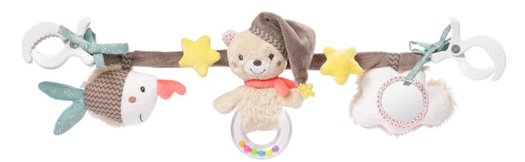 Zawieszka, Łańcuch Edukacyjny, z Kolekcji: Bruno. Pluszowa zabawka - łańcuch, nadająca się do zamontowania na poręczy każdego wózka, łóżeczka lub kojca. Aksamitnie delikatna w dotyku, z trzema zawieszkami. Pierwszą z nich jest sympatyczny miś Bruno, w swej cudnej czapeczce do spania. Druga zawieszka to barwna rybka piła , z szeleszczącym ogonkiem, wzbudzającym ciekawość. Ostatnia zabawka to śpiąca chmurka, ozdobiona bezpiecznym lusterkiem. Łańcuch służy do oglądania, chwytania, gryzienia i znakomitej zabawy oraz trenowania koordynacji ręka-oko. Figurki można dowolnie przesuwać. Materiały o różnych fakturach stymulują dotyk. Do zawieszenia na łóżeczku, wózku, nosidełku itp. Rozwija zmysły i sprawność ruchową. Świetna zabawa na spacerze i w podróży. Łatwy montaż. Można prać. Wszystkie zabawki niemieckiej marki FEHN są bezpieczne dla dzieci od 0 lat. Wykonane są z najlepszej jakości materiałów. Spełniają normy EN71, CE, badane w instytutach ""Stiftung Warentest"" lub ""kotest"".
