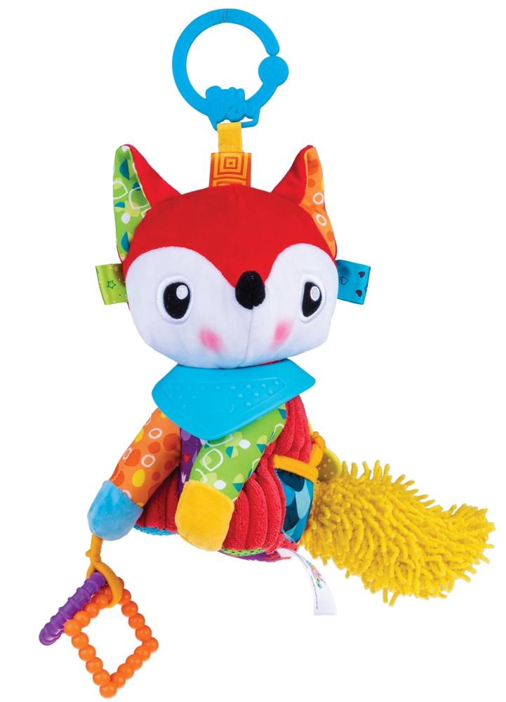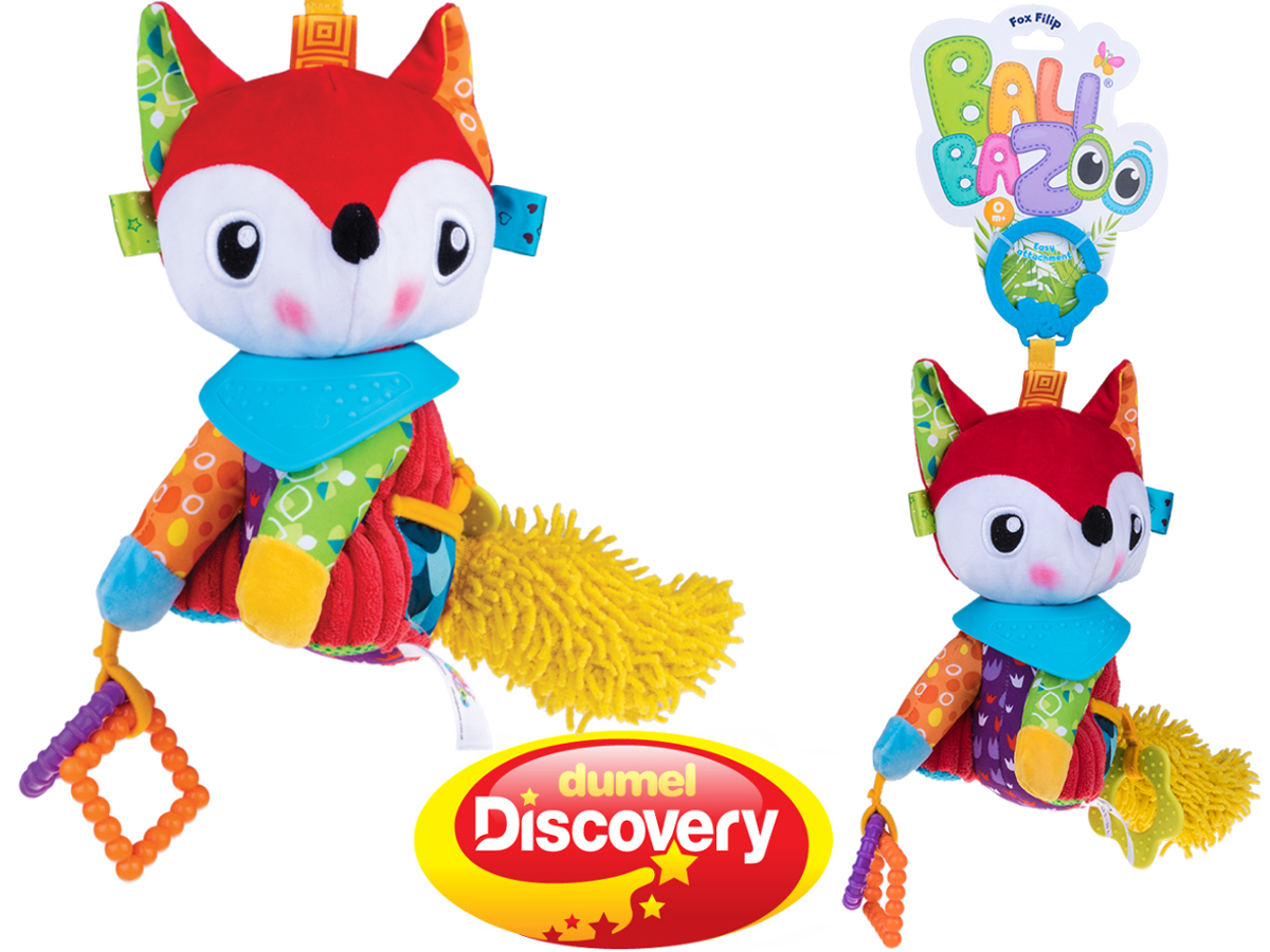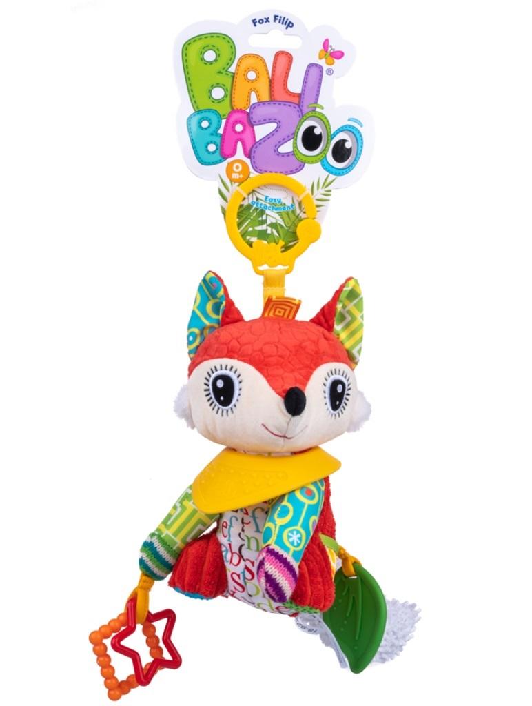 Filip to uroczy lisek, który jest bardzo nieśmiały i wciąż się rumieni. Uwielbia zabawę z maluchami oraz bujanie się na swej okrągłej zawieszce. Kółeczko to jest zarazem klamrą do mocowania, więc z jego pomocą bez trudu zawiesisz liska w wybranym miejscu, aby mógł towarzyszyć bobasowi w każdej wyprawie. Filip posiada miękką bandanę z wypustkami, która świetnie sprawdzi się w roli gryzaka. Kolorowe kształty doczepione do liska, jego sznurkowy ogon oraz materiałowe metki o różnej fakturze sprawią najmłodszym mnóstwo radości!