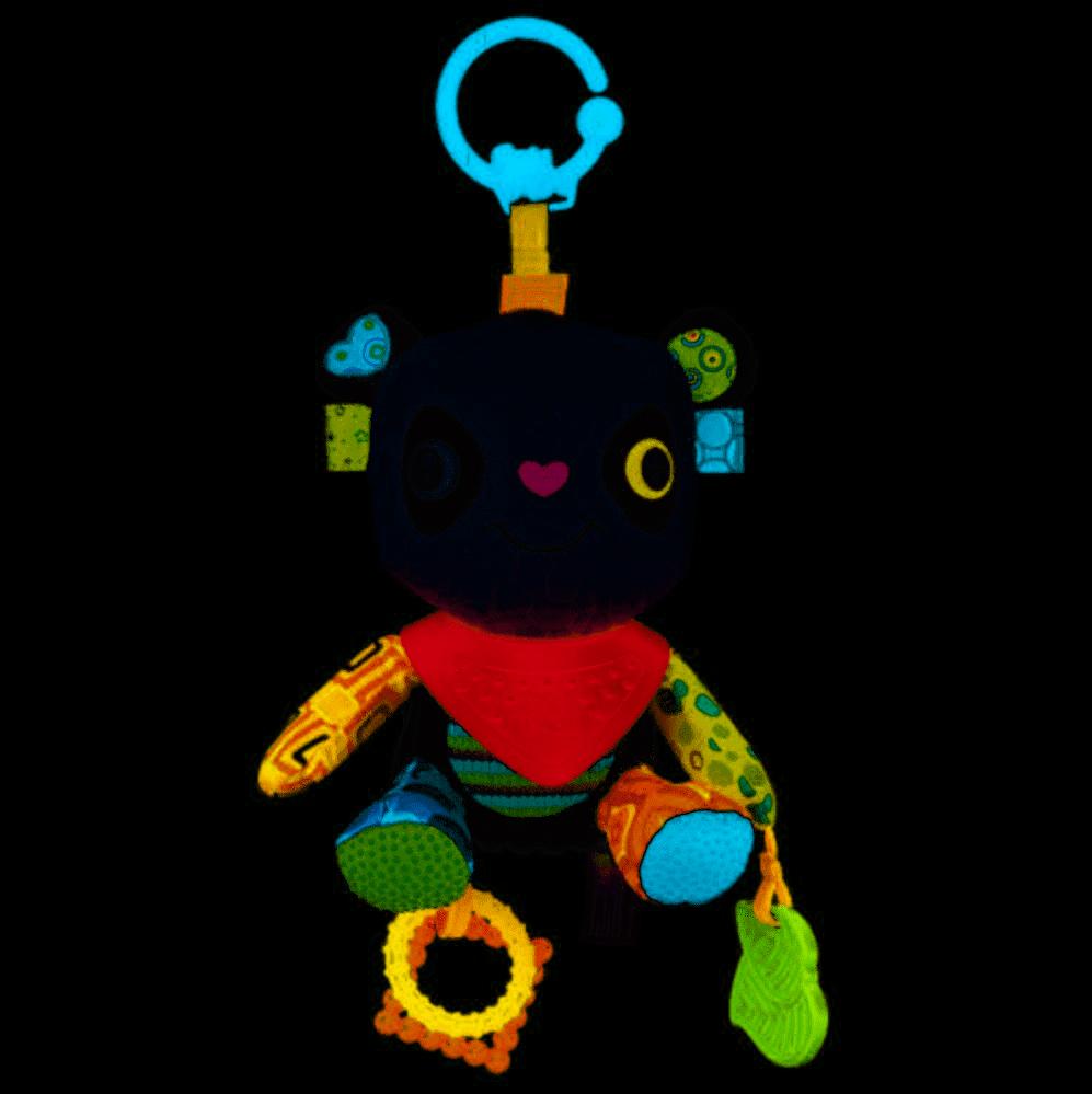 Peter to mistrz z dziedziny rozwoju sensorycznego. Jego głowę zdobią kontrastowe kolory, pobudzające zmysł wzroku malucha, a rączki i szyję, kolorowe gryzaki, które przyniosą ulgę ząbkującym maluchom. Uszka Petera zaszeleszczą, gdy tylko bobas ich dotknie, ucząc go tym samym odkrywania zależności przyczynowo-skutkowych. Ta przyjazna panda wykonana jest z różnych materiałów i ozdobiona dodatkowo metkami o zróżnicowanej fakturze, dzięki czemu pomaga ona dzieciom rozwijać umiejętności poznawcze. Pluszak wyposażony jest także w praktyczną klamrę, która pozwoli przymocować go w wybranym miejscu.