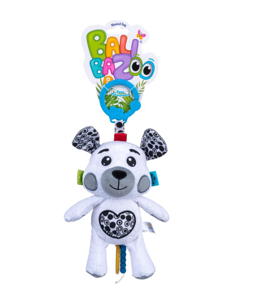 Psiak przyjaciel zadba o spokojny sen maluszka. Zdobią go kontrastowe wzory, które stymulują zmysł wzroku bobasa oraz kolorowe metki o zróżnicowanej fakturze. Doczepione do zabawki gryzaczki przyniosą ulgę obolałym dziąsełkom ząbkującego maleństwa. Piesek odtwarza piękną kołysankę, która ułatwi dziecku zasypianie, a praktyczna klamra pozwoli zająć mu wygodne miejsce w każdym dziecięcym łóżeczku czy wózku. Zabawka przeznaczona dla dzieci od dnia narodzin.