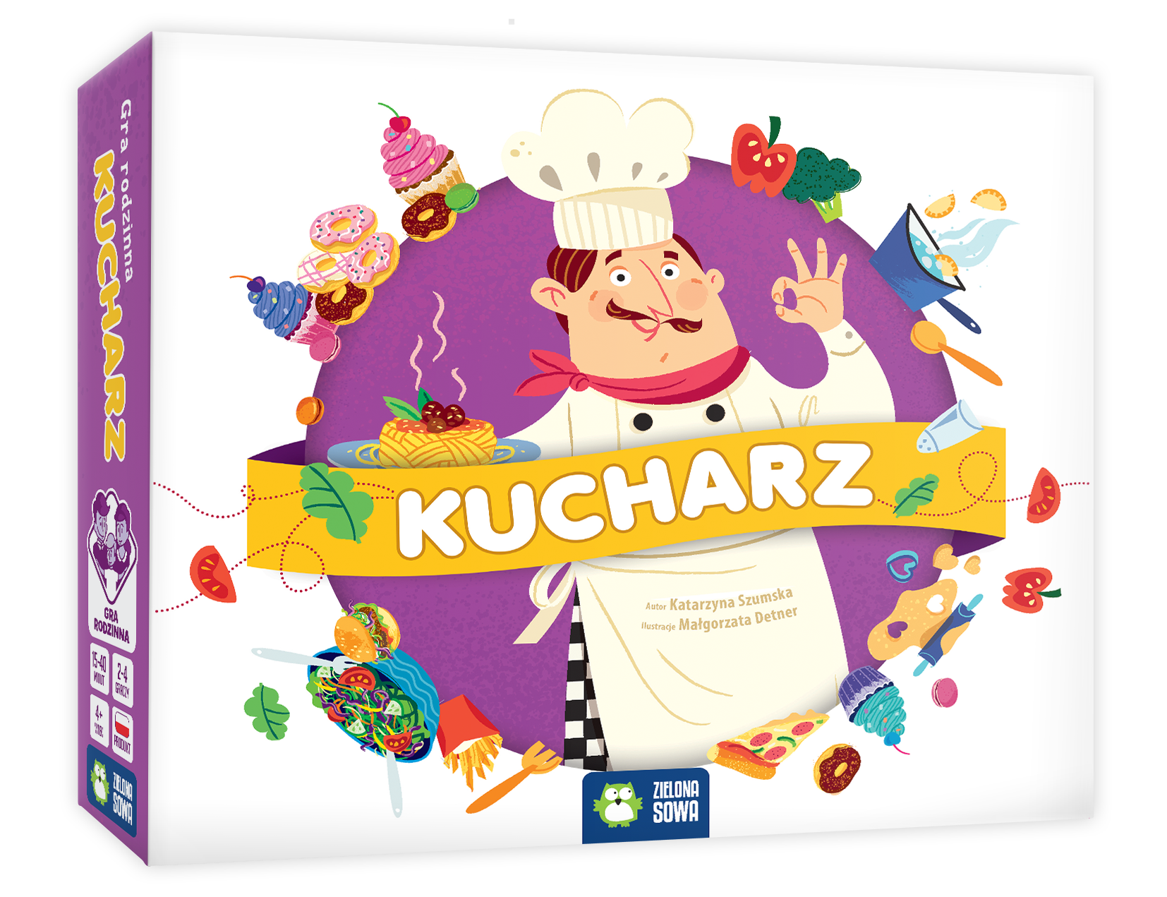 „Kucharz” to dwie rodzinne, rozrywkowo-edukacyjne planszówki i gra w pamięć dla dzieci w wieku przedszkolnym w jednym pudełku.