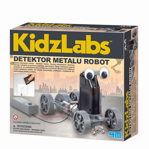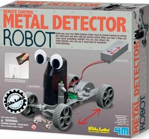 Zbuduj fantastycznego, zdalnie sterowanego robota do wykrywania metalu! Poluj na ukryte skarby jeżdżąc robotem tam i z powrotem z pomocą pilota do zdalnego sterowania. Po złożeniu robot będzie miał 14 cm długości. Gdy usłyszysz dźwięk – to znaczy, że znalazłeś coś metalowego. Możesz też zdemontować pojazd wykrywający i używać ręcznego wykrywacza w domu. To świetny gadżet, który oczaruje wszystkich Twoich znajomych.
