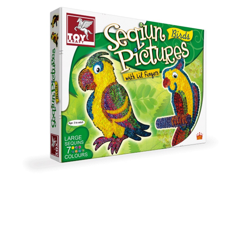 OBRAZKI ZDOBIONE CEKINAMI PTASZKI Obrazki cekinowe przeznaczone są dla najmłodszych dzieci od 3 lat. Zestaw zawiera dwa szablony obrazków dobranych tematycznie. Początkowo dziecko nie widzi obrazków ponieważ są zakryte samoprzylepnym papierem. Zestaw zawiera duże , różnokolorowe cekiny, które dziecko powinno przykleić we właściwych miejscach dopasowując je kolorystycznie odpowiednio z kolorami pokazanymi na szablonach.