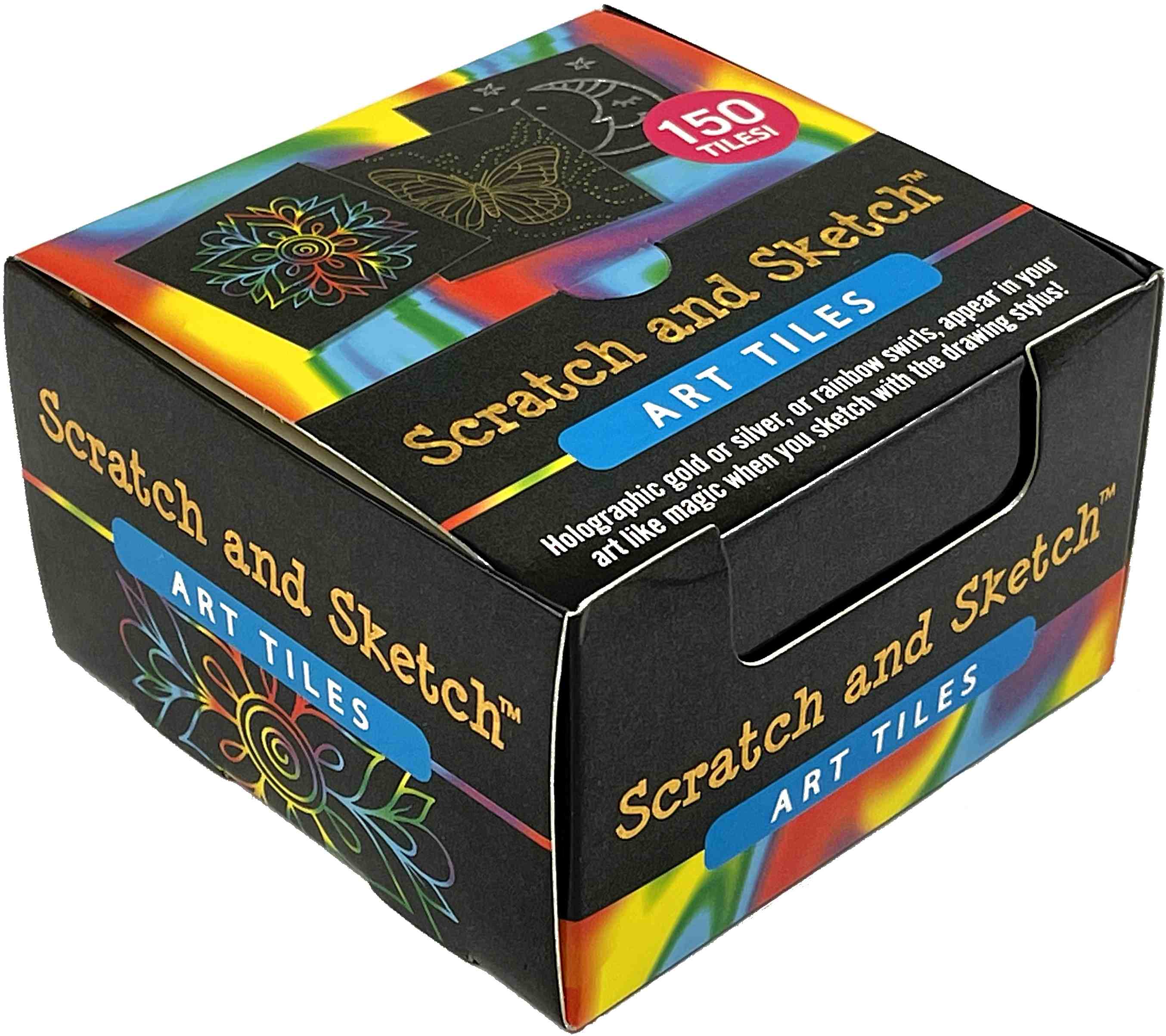 Zdrapywanka wydrapywanka Peter Pauper Press. W zestawie znajdziemy 150 arkuszy oraz 2 drewniane rysiki do zdrapywania. Pod czarną warstwą znajdziemy 50 szt złotego hologramu, 50 szt srebrnego hologramu oraz 50 szt tęczowego tła. Rezultat pracy nie jest do końca znany, gdyż zależy od ułożenia kolorów ukrytych pod warstwą. Wszyscy uwielbiają te zdrapki, a wydrapane obrazki można oprawić w ramkę. Rewelacyjnie sprawdzą się w długiej podróży jako zajęcie dla dzieci i dorosłych.
