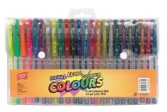 Długopis żelowy z brokatem: -grubośc wkładu: 1,0mm -ilość kolorów: 24 mix metal/fluo/glitter -wygodny, gumowany uchwyt -żywe, przyciagające kolory