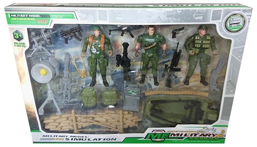 Zestaw zawiera trzy figurki komandosów z kompletem uzbrojenia i wyposażenia.