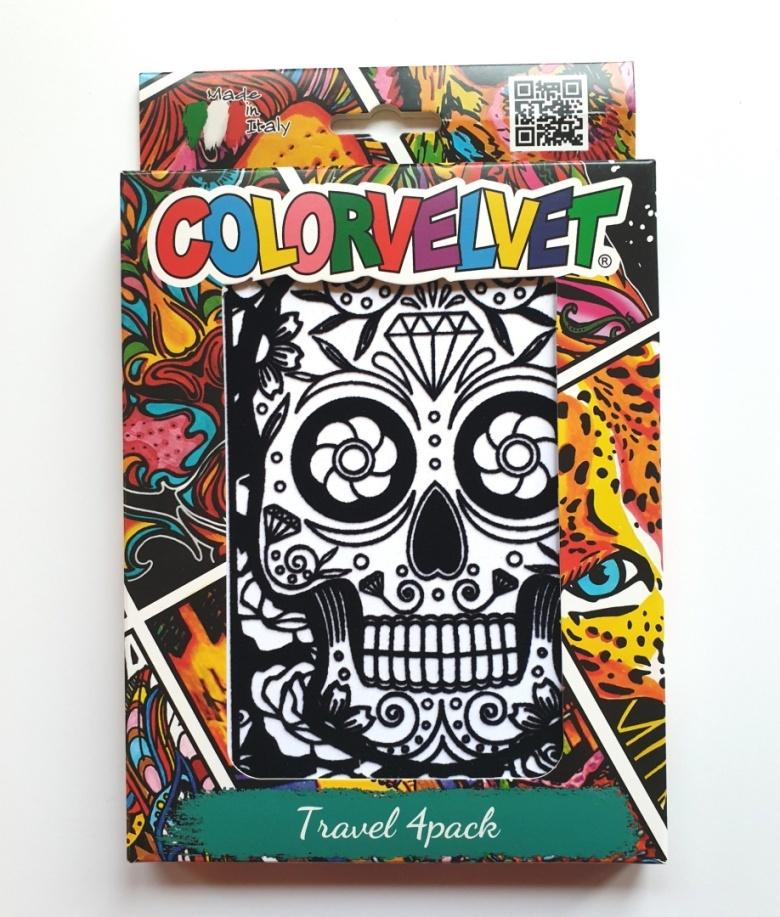 Zestaw 4 małych kolorowanek welwetowych wraz z flamastrami - idealny towarzysz podróży.