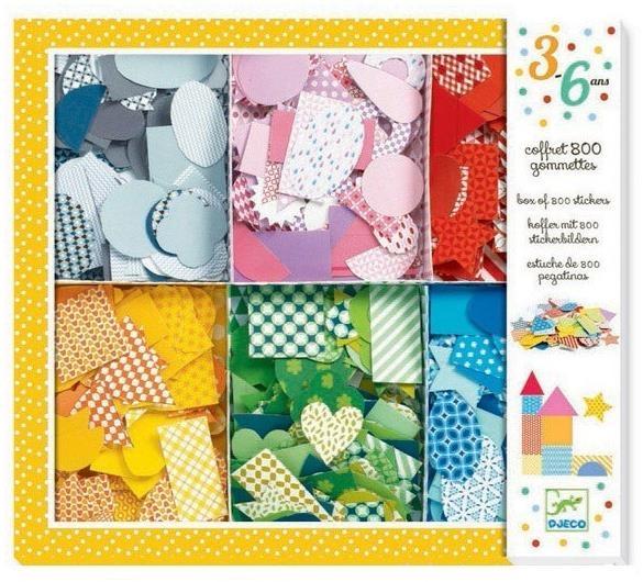 Djeco Big BOX zawiera 800 geometrycznych naklejek, posortowane według kolorów.Mnóstwo pięknych naklejek do wykorzystania, gdy masz na to ochotę.