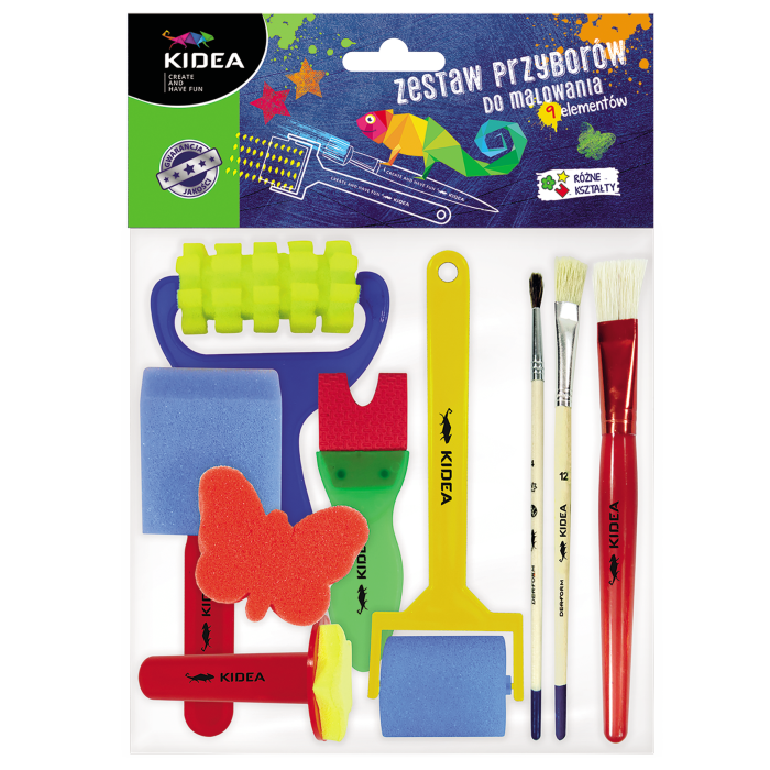 Przy pomocy zestawu do malowania KIDEA możesz nadawać malowanym powierzchniom różne ciekawe wzorki i kształty.