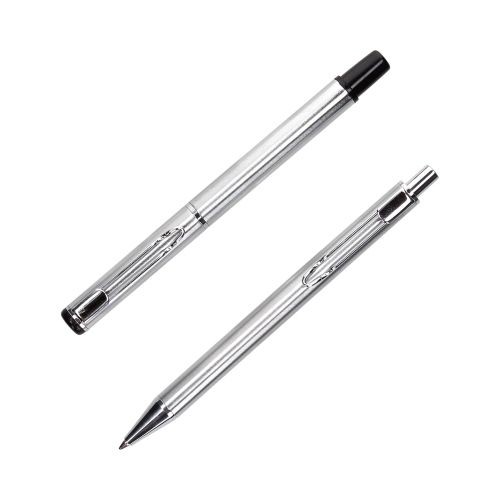 Zestaw pióro + długopis w kolorze srebrnym, zapakowane w pudełeczko.