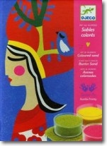 Zestaw artystyczny do malowania piaskiem4 tablice tekturowe z naszkicowanym rysunkiem. Każdy element jest ponumerowany i pokryty klejem zabezpieczonym taśmą przezroczystą. Dziecko odrywa fragment ""naklejki"" i posypuje kolorowym piaskiem. Piasek przykleja się a jego nadmiar zsypujemy z powrotem do pojemniczka i odklejamy następny kawałek... Do podważania naklejki służy specjalny rysik, dołączony do zestawu. Dzięki pomysłowym rozwiązaniom (piasek sypiemy nad tekturowym pudełkiem z otworkiem na roku) bałagan będzie minimalny, a końcowy efekt zachwycającyZestaw zawiera:4 pokryte klejem i zabezpieczone folią karty12 pojemniczków z kolorowym piaskiem1 patyczek - narzędzie do łatwego odrywania naklejek i nadawania kształtu1 książeczka z instrukcją krok po krokuWiek: 4 +Wymiary pudełka: 16,5 x 23 x 4 cm
