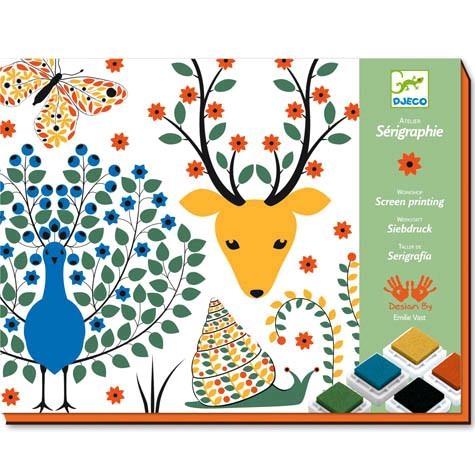 Kolorowy zestaw zawiera wszystko co potrzebne aby młody artysta stworzył piękne obrazki techniką serigrafii.Zestawy z tej kolekcji stanowią idealne wprowadzenie najmłodszych w tajniki popularnych technik plastycznych.W zestawie znajdują się:4 kolorowe sztywne kartoniki - podstawa czterech obrazków,12 szablonów do stemplowania,5 poduszeczek z kolorowym tuszem do stemplowania,Instrukcja obrazkowa krok po kroku pokazująca jak stworzyć obrazki.Gotowe obrazki będą tak urocze, że z przyjemnością zawiesisz je na ścianie jako dekorację pokoju.Całość zapakowana jest w sztywne kolorowe pudełko zamykane na gumowa tasiemkę.Zabawka przeznaczona jest dla dzieci w wieku 306 lat.Wymiary: 29,5x23x4 cm;