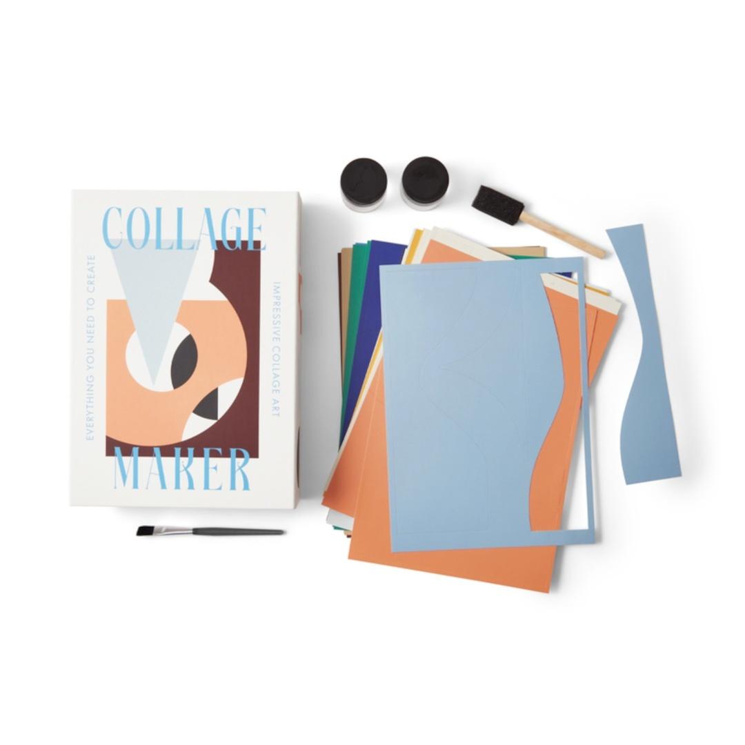 Zestaw do tworzenia kolaży zawiera: 5 arkuszy białego, wysokiej jakości papieru o gramaturze 350 gramów do nanoszenia kolaży, 55 unikalnych kształtów na kolorowym papierze o gramaturze 350 gramów, 2 puszki przezroczystego kleju, 1 x cienki pędzelek, 1 x pędzelek z gąbką (do pokrycia większych obszarów klejem).