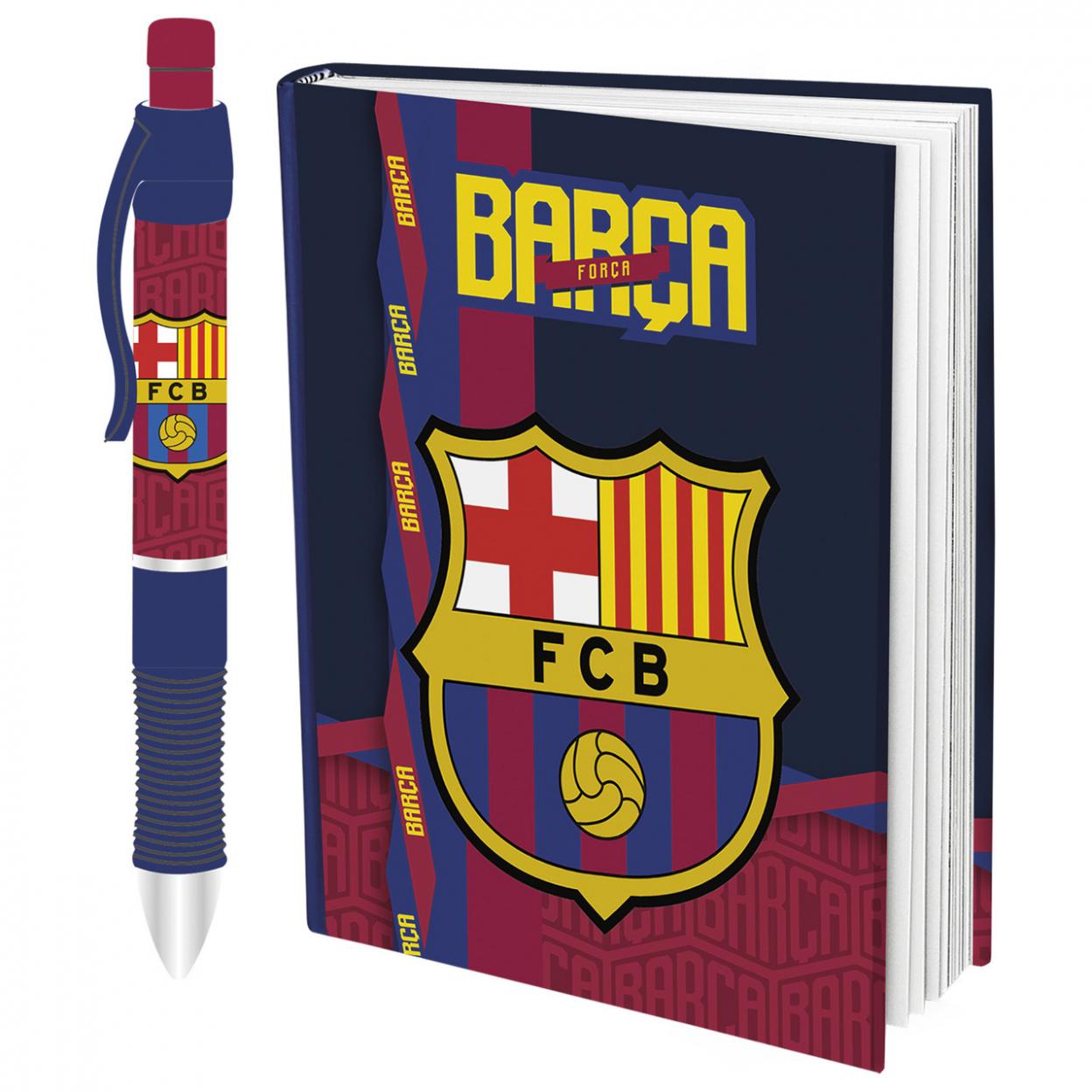 Zestaw, w skład którego wchodzą długopis automatyczny wraz z notesem w sztywnej oprawie z nadrukiem licencyjnym.