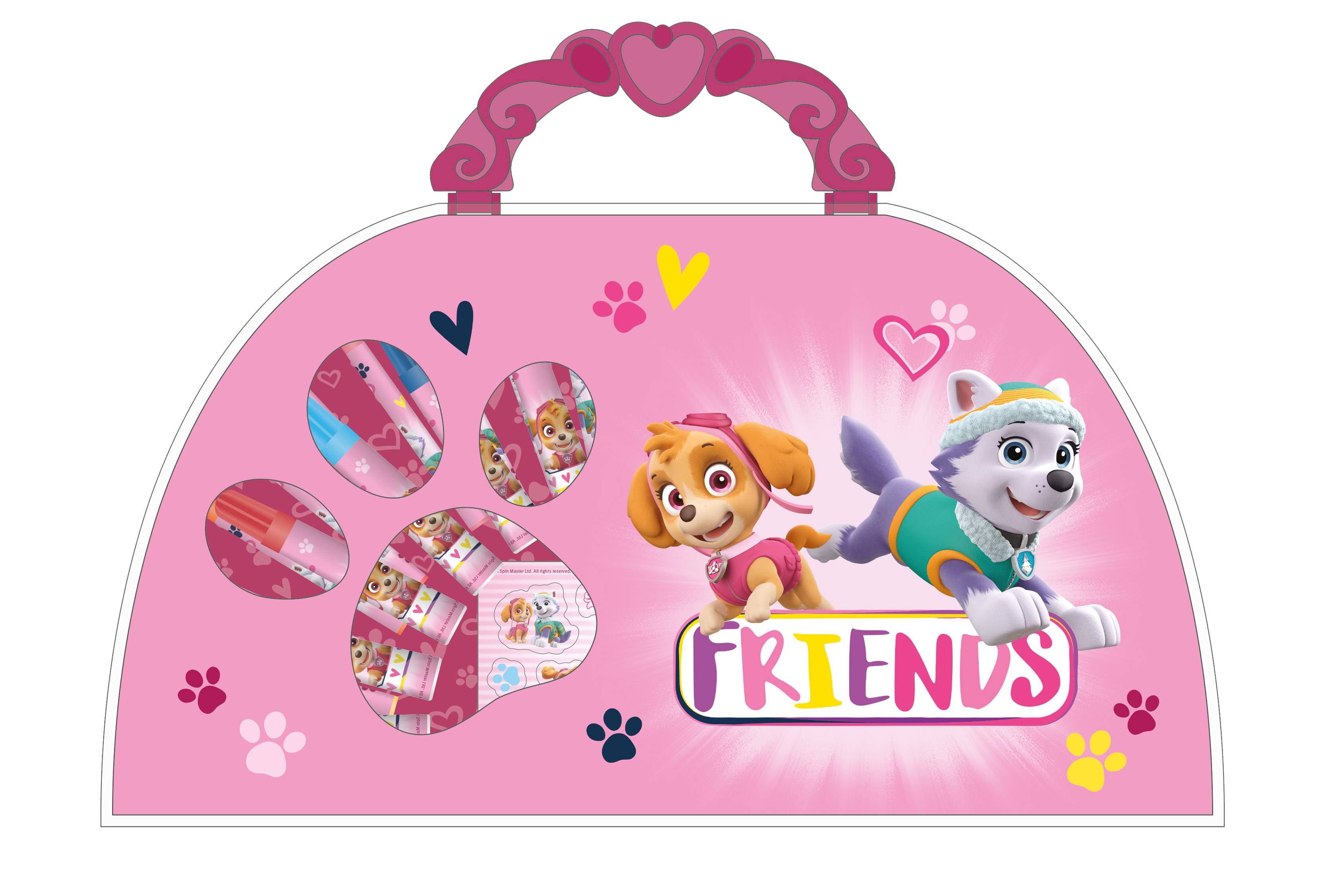 Zestaw do kolorowania Psi Patrol w półokrągłym etui z uchwytem. Zawartość: 12 mini kredek, 6 markerów, 24 kredki, gumka, 2 mini ołówki, temperówka, 4 plakaty, 1 arkusz naklejek