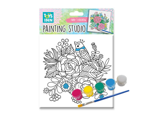 Canvas do pomalowania to doskonały pomysł na kreatywne spędzenie wolnego czasu. W zestawie znajduje się podobrazie o wymiarach 15x15 cm, pędzel, farby w 5 kolorach: białym, żółtym, różowym, niebieskim i zielonym.