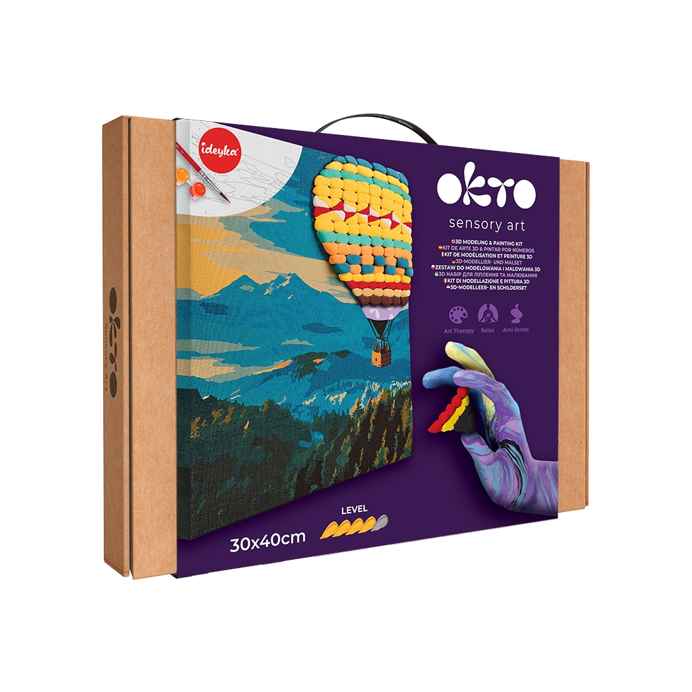 Z zestawem OKTO Lot balonem nie tylko tworzysz obraz kształtujesz wolność własnymi palcami. Przestrzenne detale balonu, ciepłe odcienie, otwarte niebo.