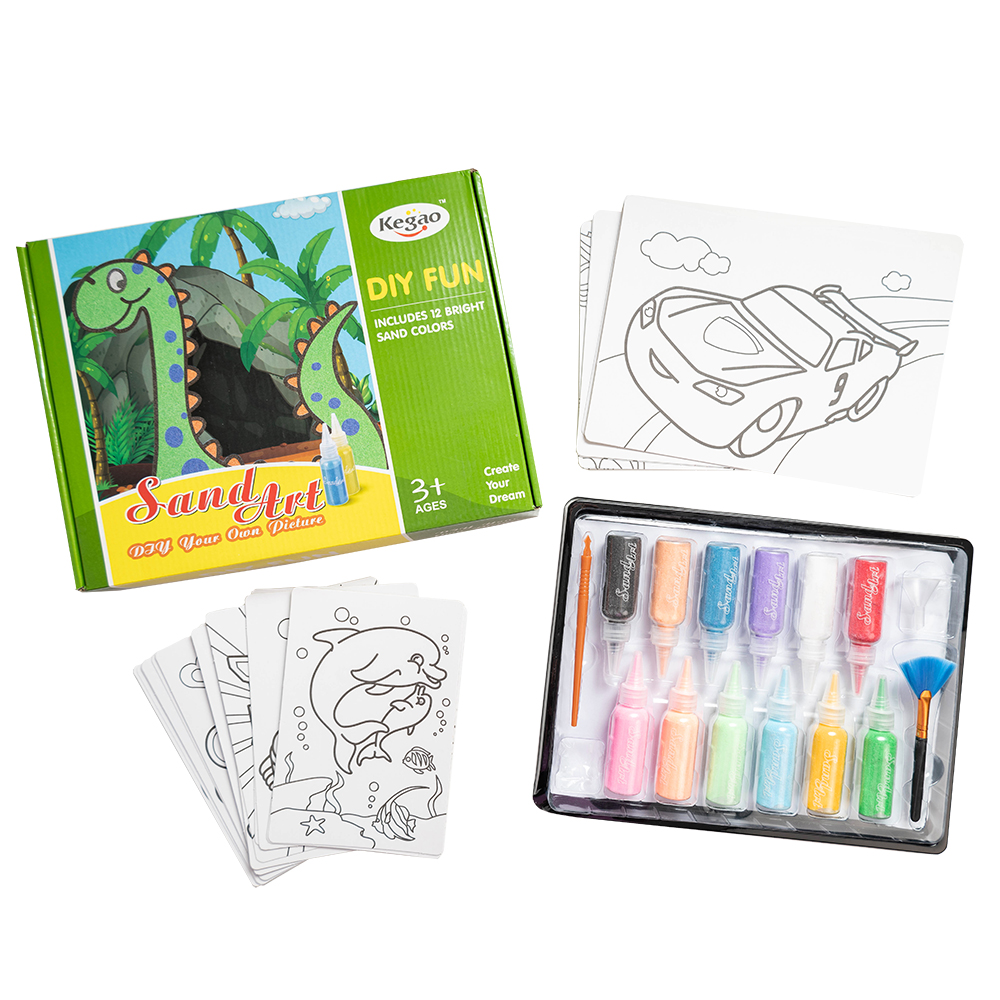 Kolorowanki do malowania piaskiem - zestaw ze zwierzątkami i pojazdami