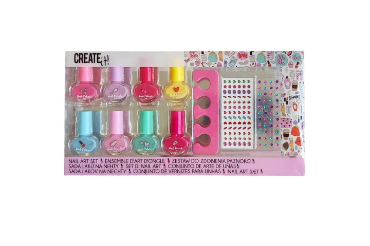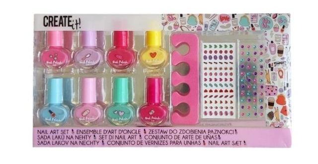 Zestaw do zdobienia paznokci. Wybierz jeden z jasnych kolorów zawartych w tym zestawie i zacznij malować paznokcie. Wykończ je wszystkie jasnymi diamentami i naklejkami. Zestaw zawiera 8 lakierów do paznokci, diamenciki i naklejki do ozdoby oraz separator. W zestawie znajduje się 8 lakierów, separator, arkusz naklejek i arkusz diamentów do ozdabiania.