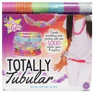 Zestaw Totally Tubular zawiera: 200 akrylowych kryształków, 700 koralików, 200 cekinów, 8 metalowych zapięć, kolorowe rurki - 4,84m, 2 bransoletki, metaliczną gumkę, 6 metalowych zakończeń oraz instrukcję