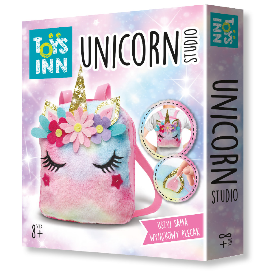 Zestaw do szycia - Plecak Jednorożec - to idealny pomysł na spędzenie wolnego czasu. Dzieki temu zestawowi, każda dziewczynka może uszyć plecak o wymiarach około 23 cm x 20 cm x 6,5 cm , który będzie idealnym dopełnieniem modnych stylizacji. Zestaw zawiera: elementy z filcu i pluszu gotowe do zszycia, elementy dekoracyjne, nici, plastikową igłę, instrukcję.
