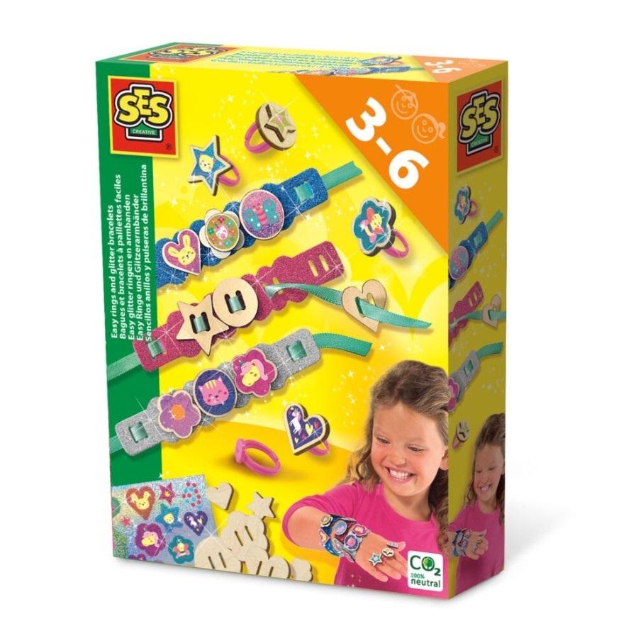 Dzięki trzem brokatowym bransoletkom i drewnianym zawieszkom możesz tworzyć różne bransoletki i pierścionki, malować zawieszki lub naklejać holograficzne naklejki na pierścionki i bransoletki.