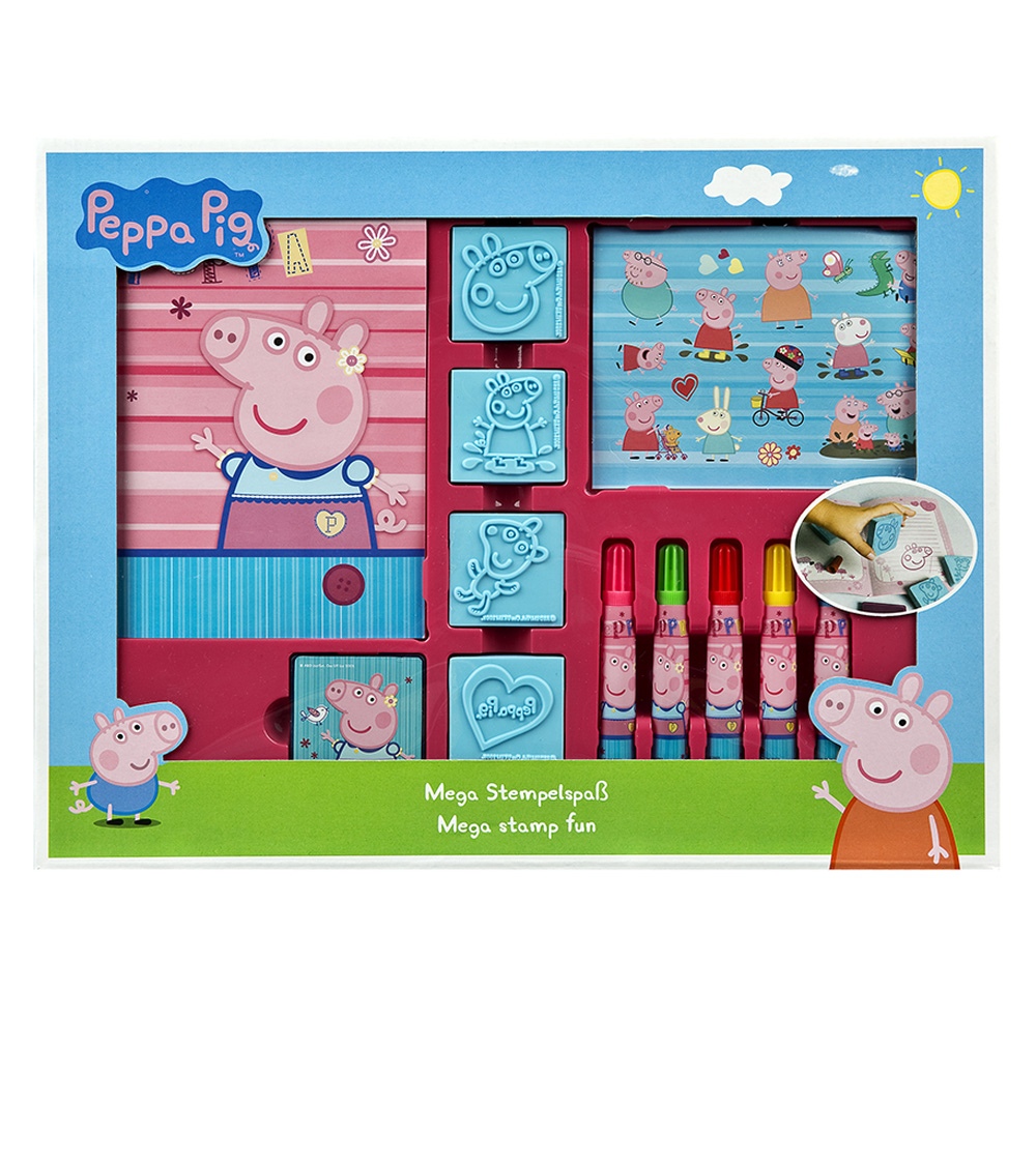Fantastyczny zestaw kreatywny złożony 13 elementów, z dużymi stemplami 4 szt., przyciąga wzrok, wyróżnia się wysoką jakością i funkcjonalnością. Inspirowany wizerunkami bohaterów z kultowej bajki Świnka Peppa. Tylko wyobraźnia wyznacza tu granice. Dzięki uroczym bohaterom szkoła może być fajna. Nieważne czy jesteś pierwszoklasistą czy piątoklasistą - potrzebujesz przyborów do szkolnej przygody.