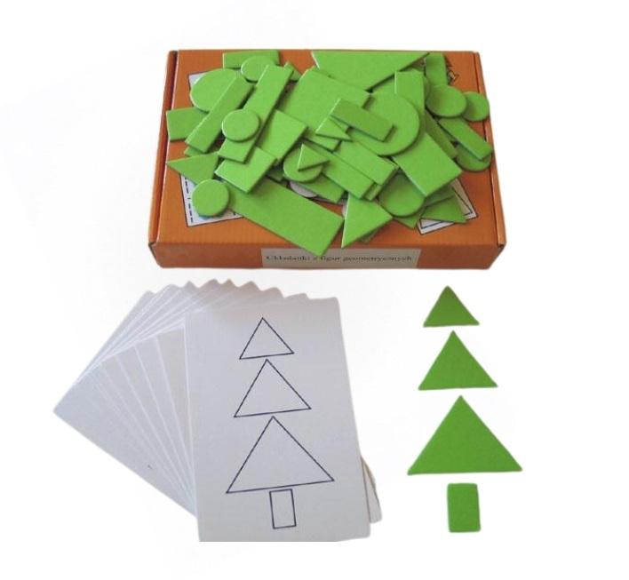 - 73 kolorowe elementy (figury)- 12 plansz- opis przykładowych ćwiczeń