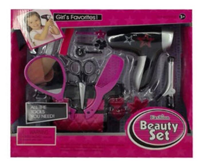 Zestaw fryzjerski - komplet akcesoriów z suszarką na baterie.