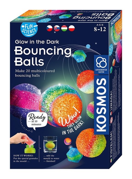 Samodzielnie zrobisz kolorowe, świecące w ciemności piłeczki! Dzięki specjalnemu granulatowi i formie odlewniczej możesz wykonać kulki w róznych kolorach. Granulat nie zawiera żadnych dodatków utrwalających. Gdy po 2-3 dniach piłeczka wyschnie, straci swoje właściwości sprężyste. Możesz wtedy zrobić nowe piłeczki, na przykład z oczami!