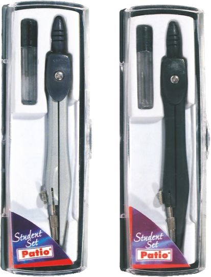 Cyrkiel z kompletem zapasowych rysików, w plastikowej kasetce.