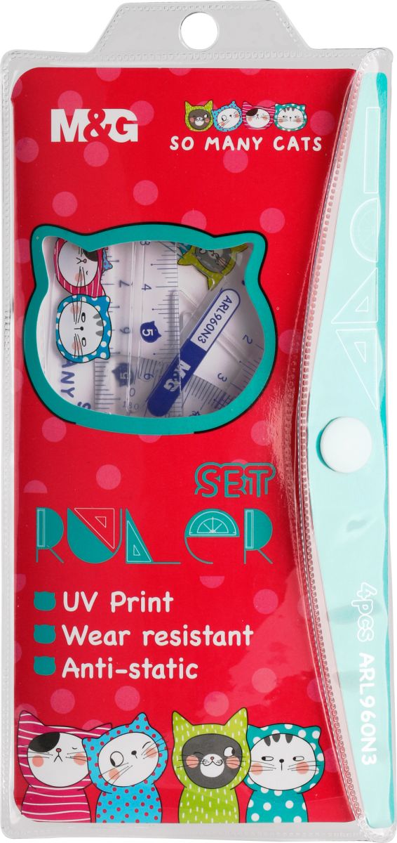 W zestawie: linijka 15 cm ekierka prostokątna ekierka równoramienna kątomierz